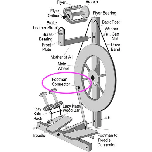 Replacement footman connector for the Louet S90 spinning wheel.