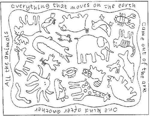Oh Noah! rug hooking pattern on Linen 36″ x 47″ by Melissa Elliot.